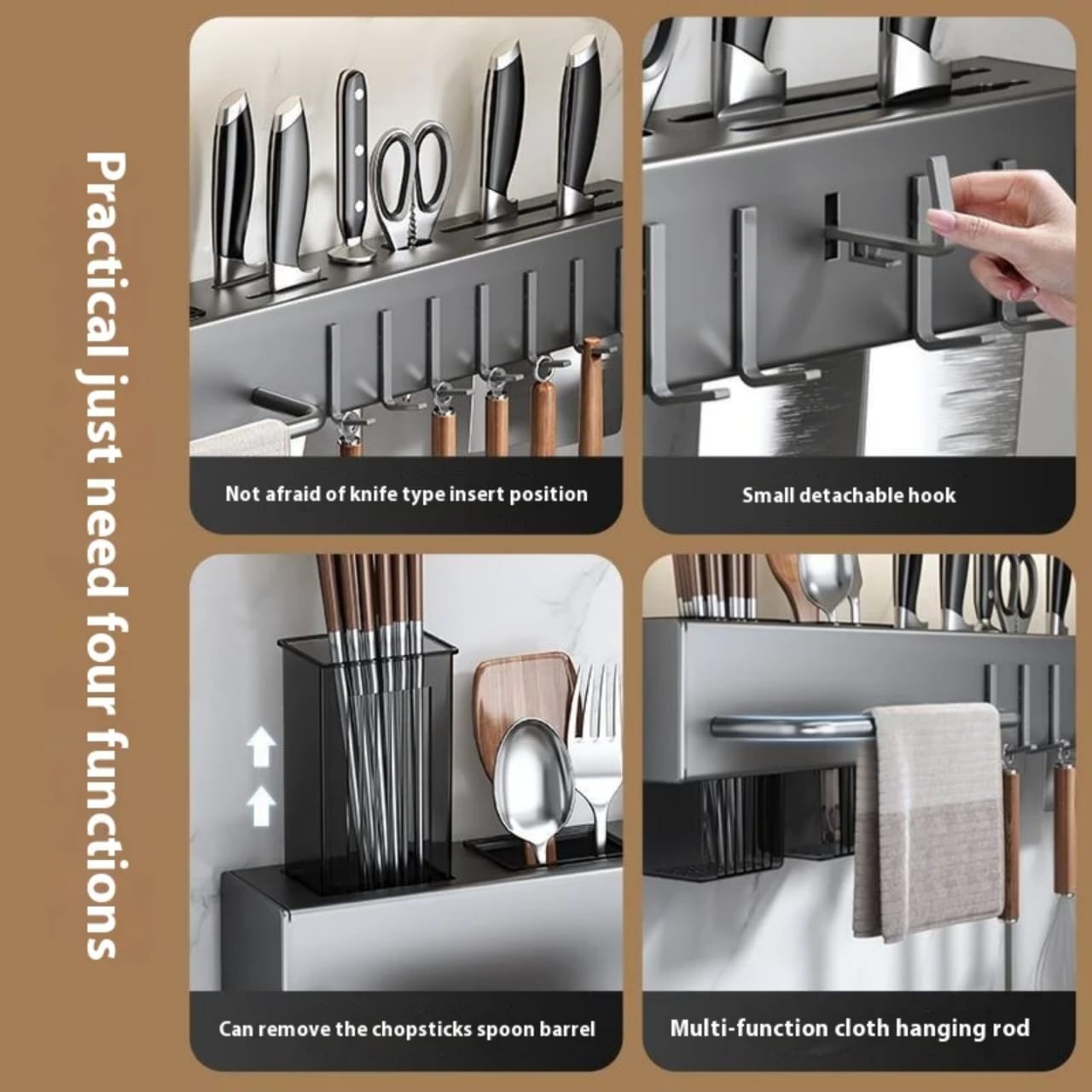 Support mural pratique et élégant pour ranger couteaux, ustensiles et épices. Gagnez de la place et gardez votre cuisine toujours bien organisée.